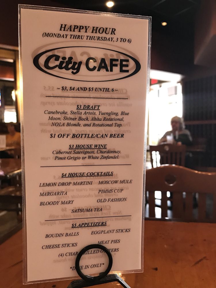 City Cafe, located in Baton Rouge, Louisiana, is a bustling bar and restaurant offering a diverse menu of seafood and American cuisine. With options for takeout, delivery, and reservations, City Cafe is a convenient choice for any dining occasion. The menu boasts a variety of appetizers, from classic favorites like Boudin Balls and Buffalo Hot Wings to unique offerings like Fried Dill Pickles and Meat Pies. For those looking for a lighter option, the soups and salads section features refreshing choices like Caesar Salad, Shrimp Remoulade, and Tuna Salad. Don't miss out on their delicious Po'boys, including Catfish, Oyster, and Shrimp varieties. With amenities such as outdoor seating, live music, and a full bar, City Cafe provides a vibrant and enjoyable dining experience for all.
